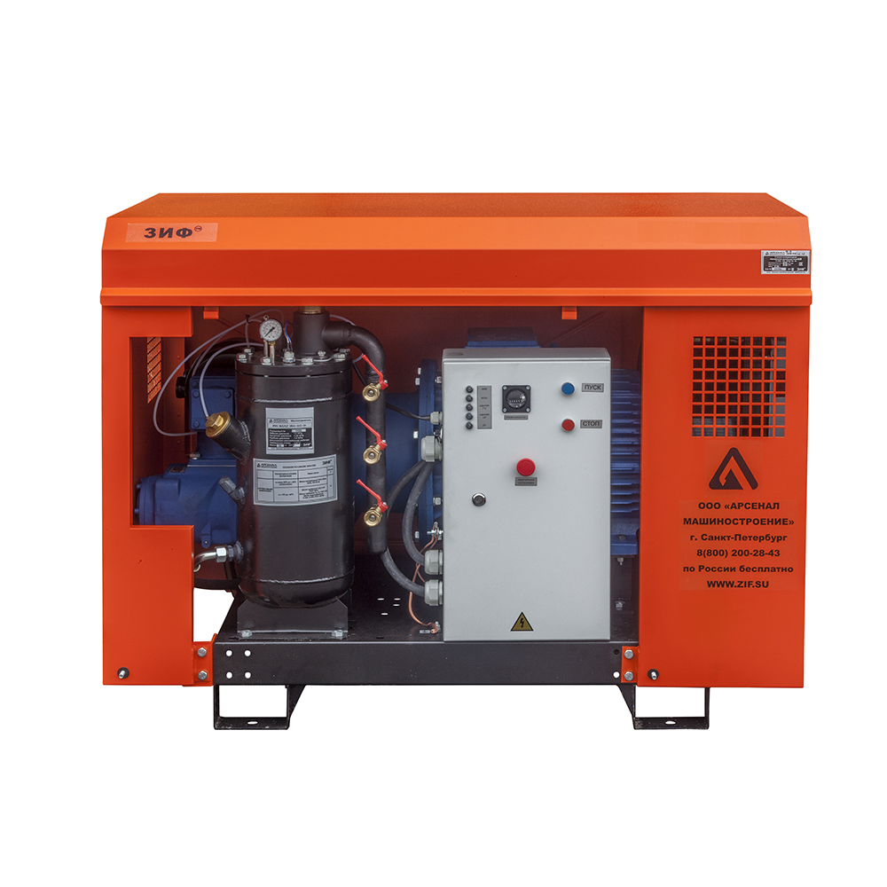 Электрические станции ЗИФ-СВЭ без кожуха могут быть полезны, когда размещение компрессора в производственном помещении по различным причинам невозможно или неудобно.
