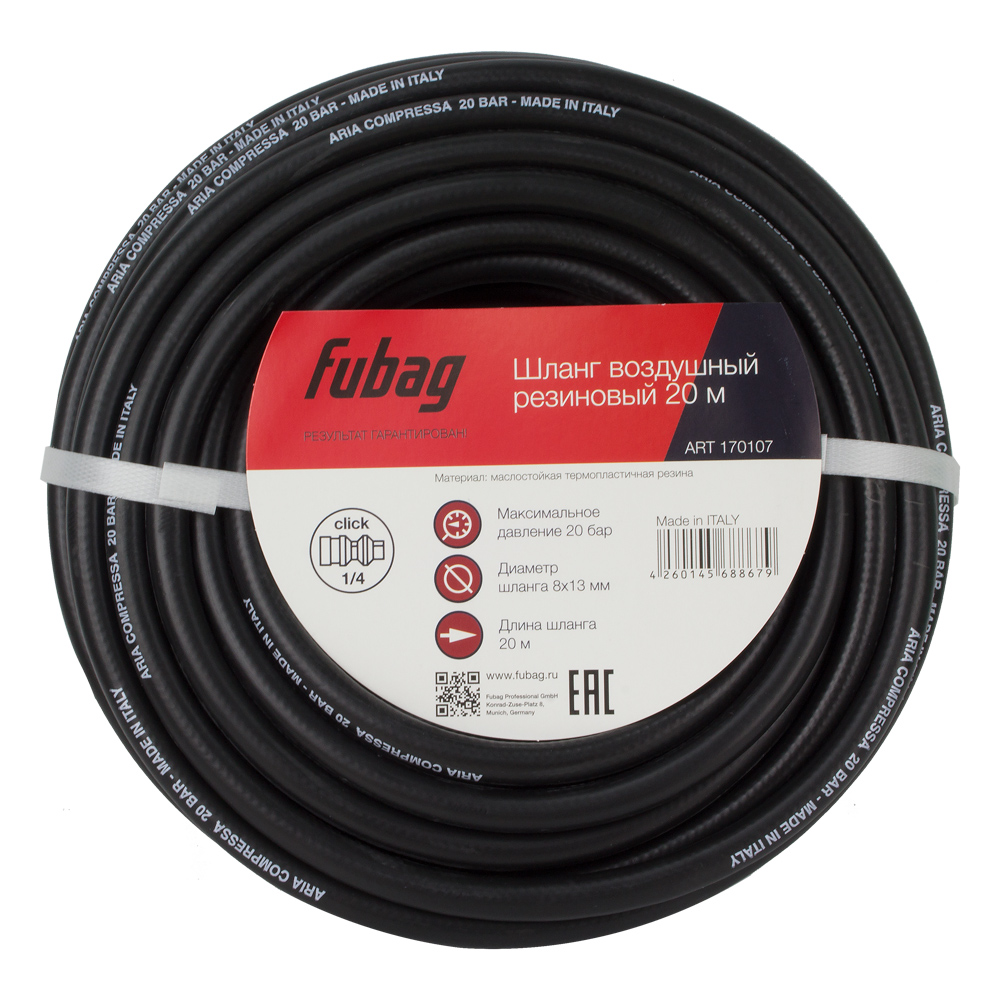 Шланг из маслостойкой резины с фитингами, 8x13мм, 20м FUBAG [170107] в Чебоксарах